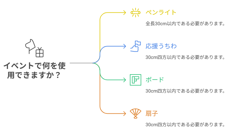 この規定で特に重要なのは、【大光量ペンライトや改造品の持ち込み禁止】です。