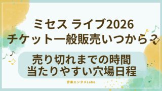 ミセスライブ2026の一般チケットはいつから?売り切れまでの時間や即完売の理由、当たりやすい穴場日程を過去ツアーの傾向から徹底解説。一般販売がない可能性や追加席・注釈付き席の狙い方、チケットを取るために今やるべき準備も分かります。