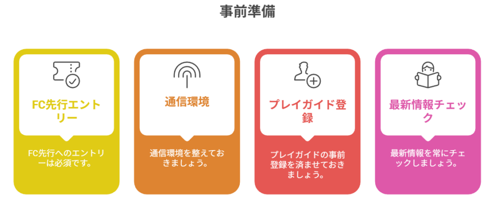 FC会員限定の最速先行は抽選制で、一般販売よりも当選確率が高く設定されています。