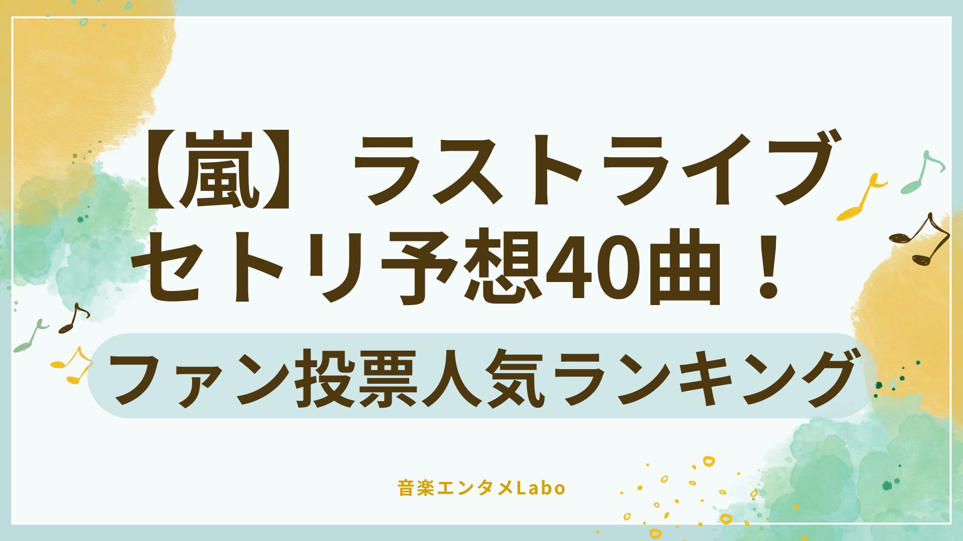 嵐のラストライブ2026のセトリは、過去ツアーの傾向や本人発言から見て「再会・感謝・未来」を軸に構成される可能性が高いです。