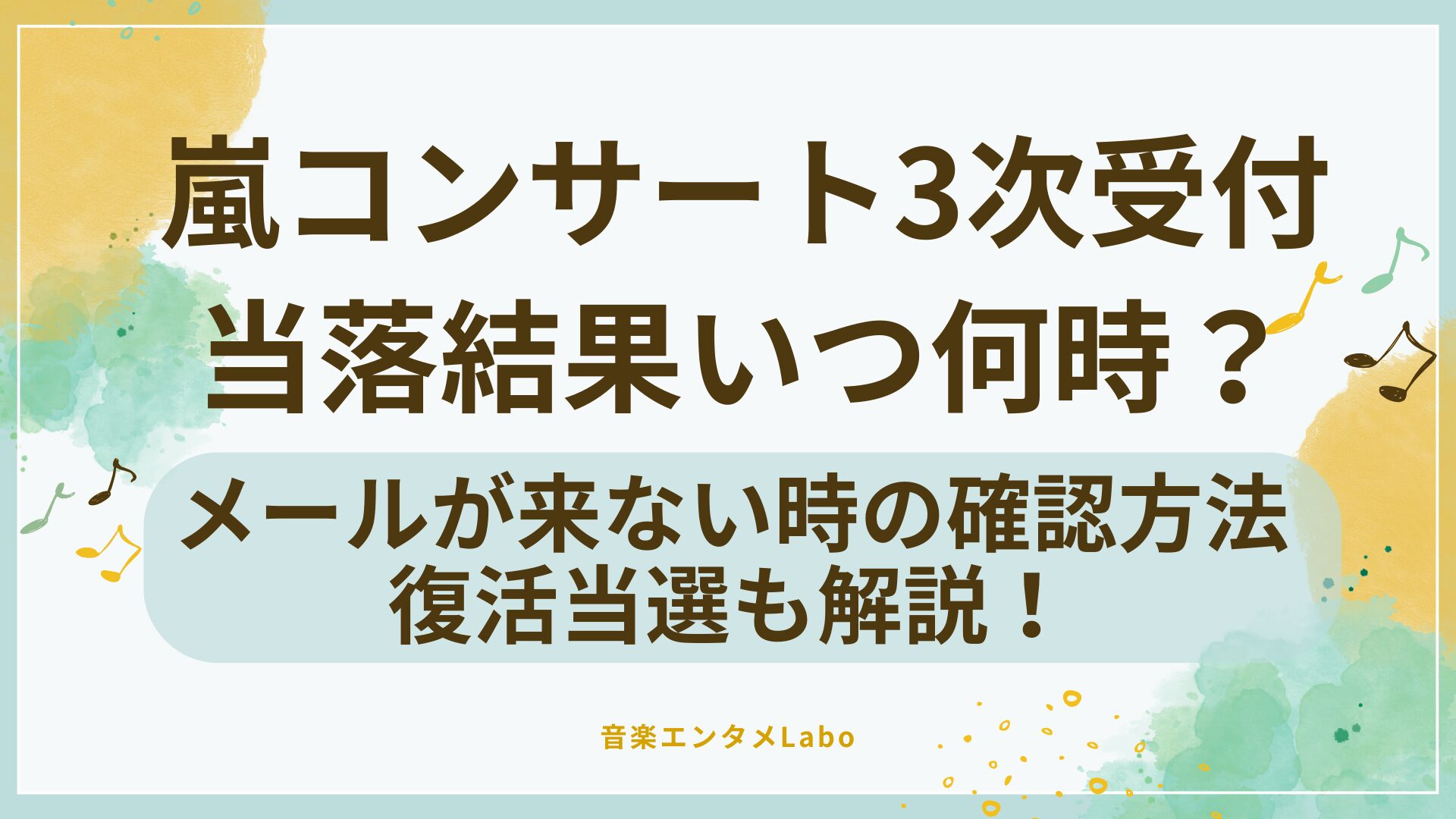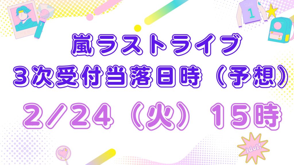 嵐ライブ2026の3次当落発表日は、2026年2月24日(火)と予想します。