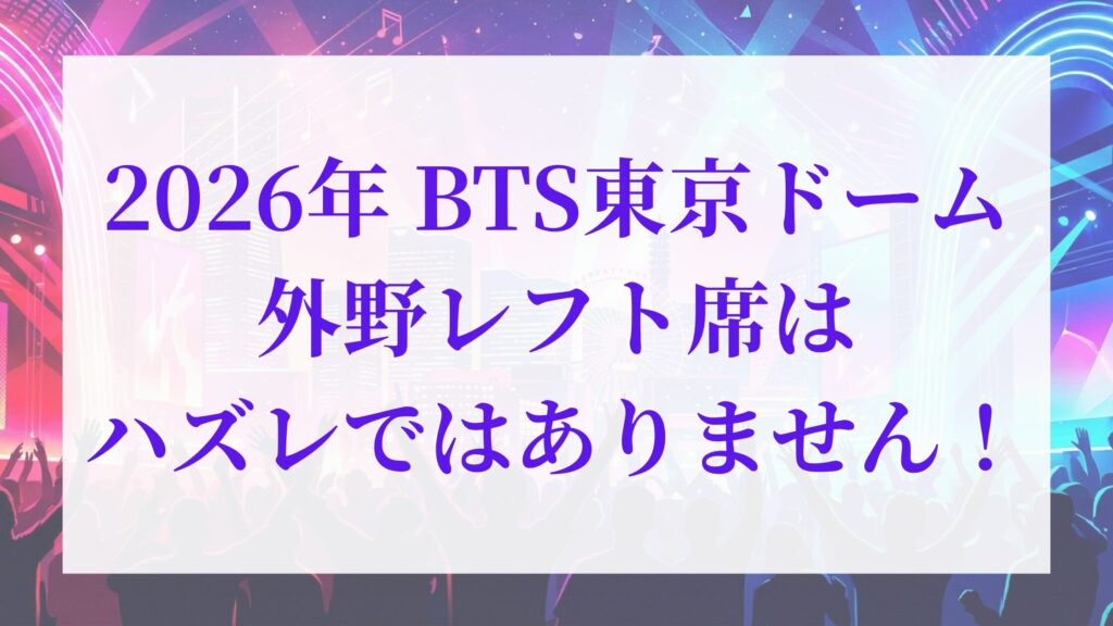 2026年のBTS東京ドーム公演において、外野レフト席は決してハズレではありません。
