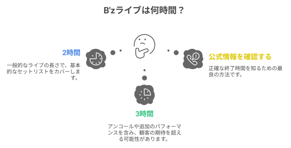 B’zの公演時間は、どのツアーでもほぼ共通して2時間30分前後の構成が基本となっています。