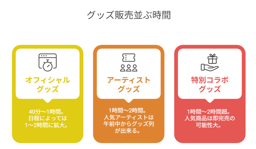 アーティストグッズやコラボグッズはさらに混雑になる可能性があるよ。