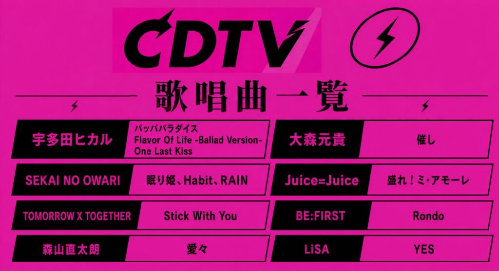 今回の放送は、テレビ初披露の楽曲やフルサイズでのパフォーマンスが多く、音楽ファンにとって非常に満足度の高い2時間になること間違いありません。