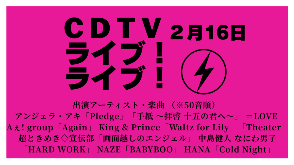 CDTV(カウントダウンTV)ライブライブタイムテーブル2/16今日