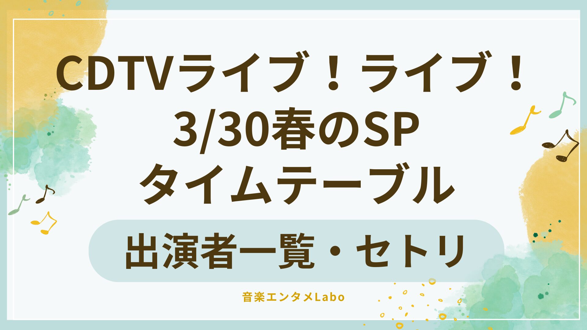 今回は、今日3月30日放送の「CDTVライブ!ライブ!春の4時間SP」について、タイムテーブルや出演者、セットリストの最新情報を解説しました。