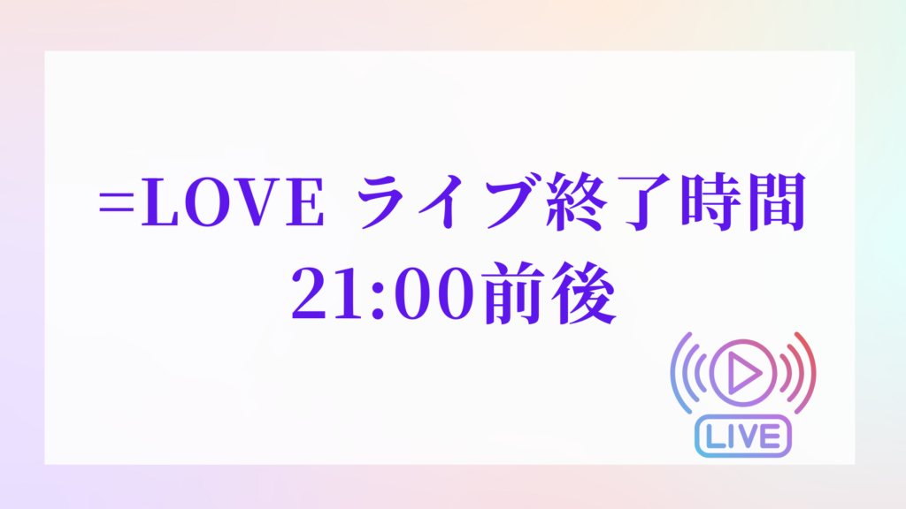 2026年6月に開催されるイコラブ国立競技場ライブの終演予定時間は、21:00前後になると予測されます。