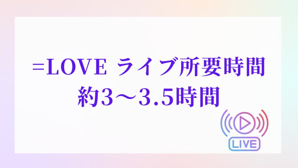 2026年開催のイコラブ国立競技場ライブの公演時間は、約3.5時間になると予測されます。