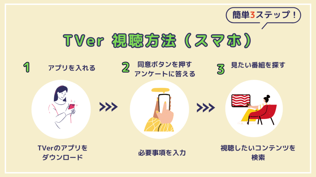 スマホやタブレットで視聴する場合、次の3ステップでアクセスが可能です。
