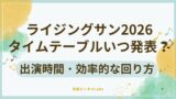 例年、チケットの先行販売が進み、全出演者が出揃った直後にタイムテーブルが公開されるため、今がまさに発表直前の重要なフェーズです。