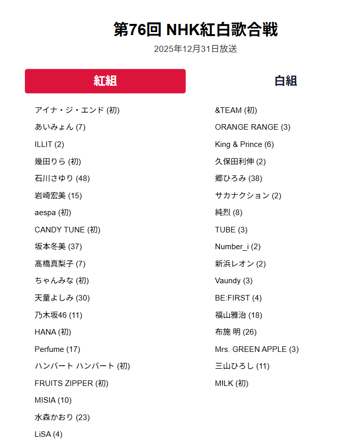 この「段階的発表型」は、紅白を長期間話題を持続させるための戦略であり、2025年はメイン発表後も、12月中旬〜下旬にかけてサプライズ出演や特別企画枠の情報が小刻みに追加される展開が見込まれます。