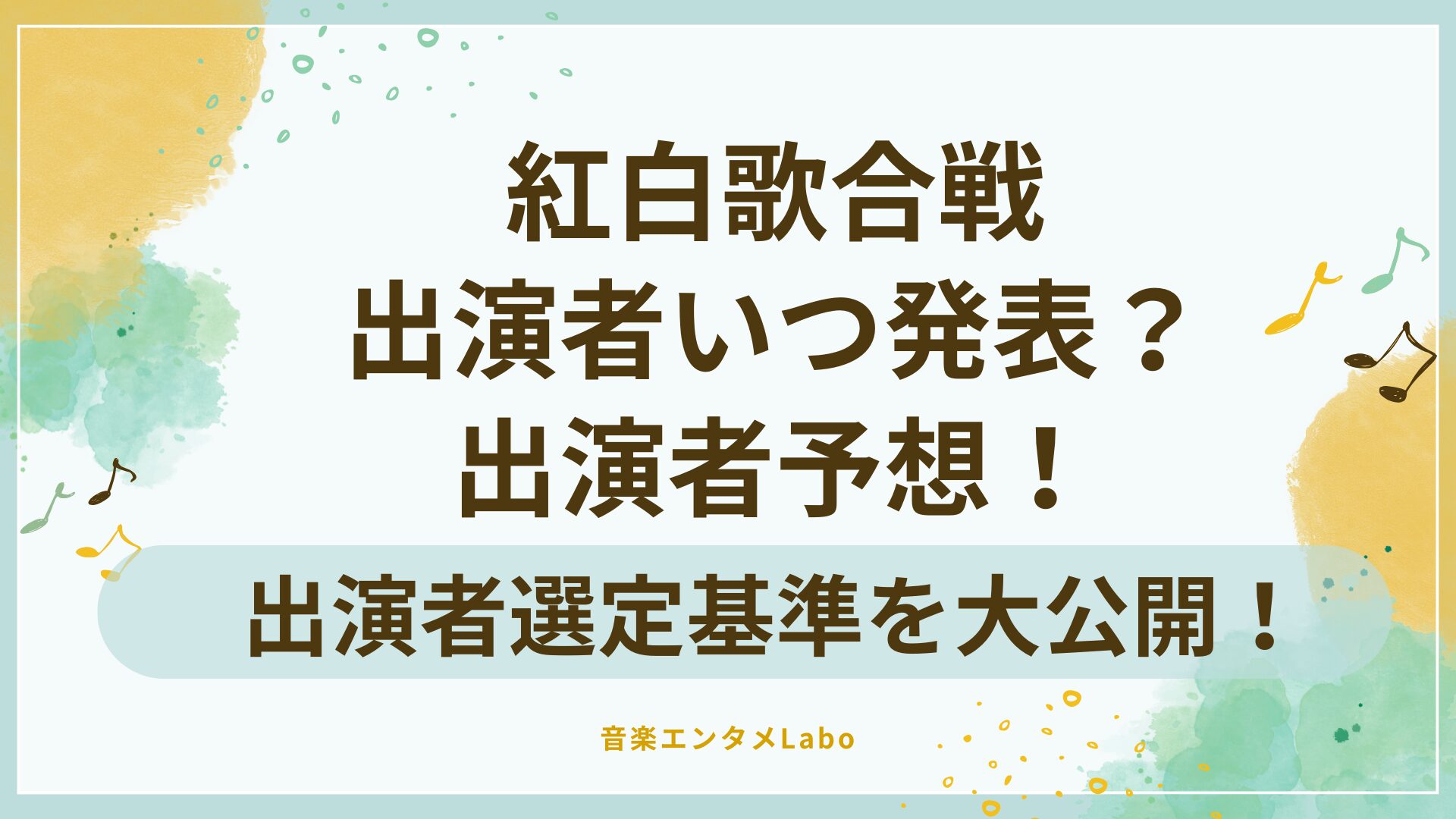 いよいよ出演者発表が、年末にかけて報道が増えていく時期!