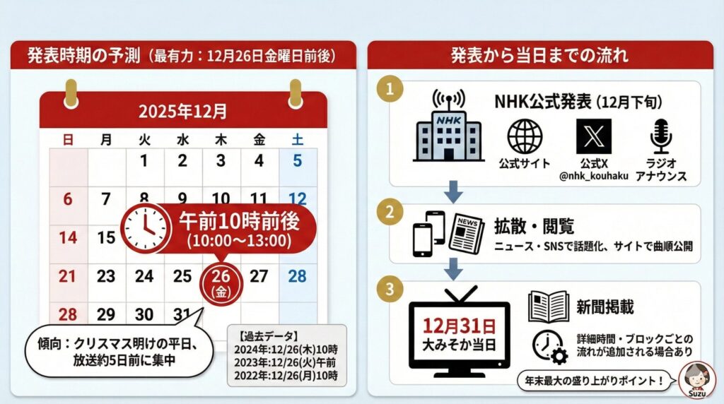 - 紅白2025のタイムテーブルはいつ発表されるの?