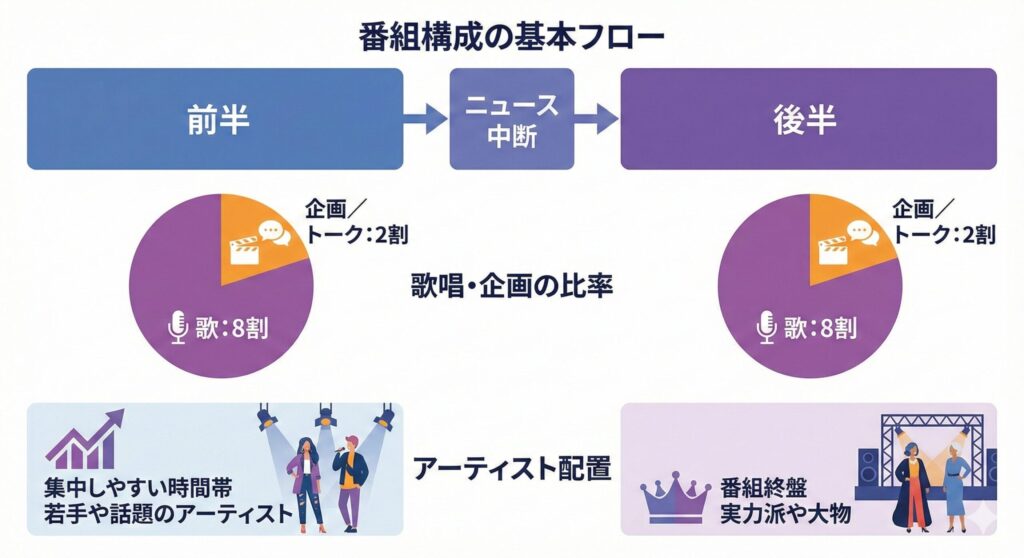タイムテーブルは紅白交互・時間帯の盛り上がり・ステージ転換など多くの要素から編成され、発表後はSNSやニュースで一気に拡散されます。
