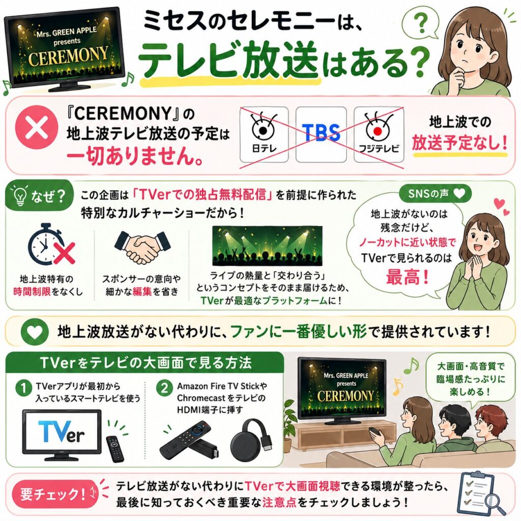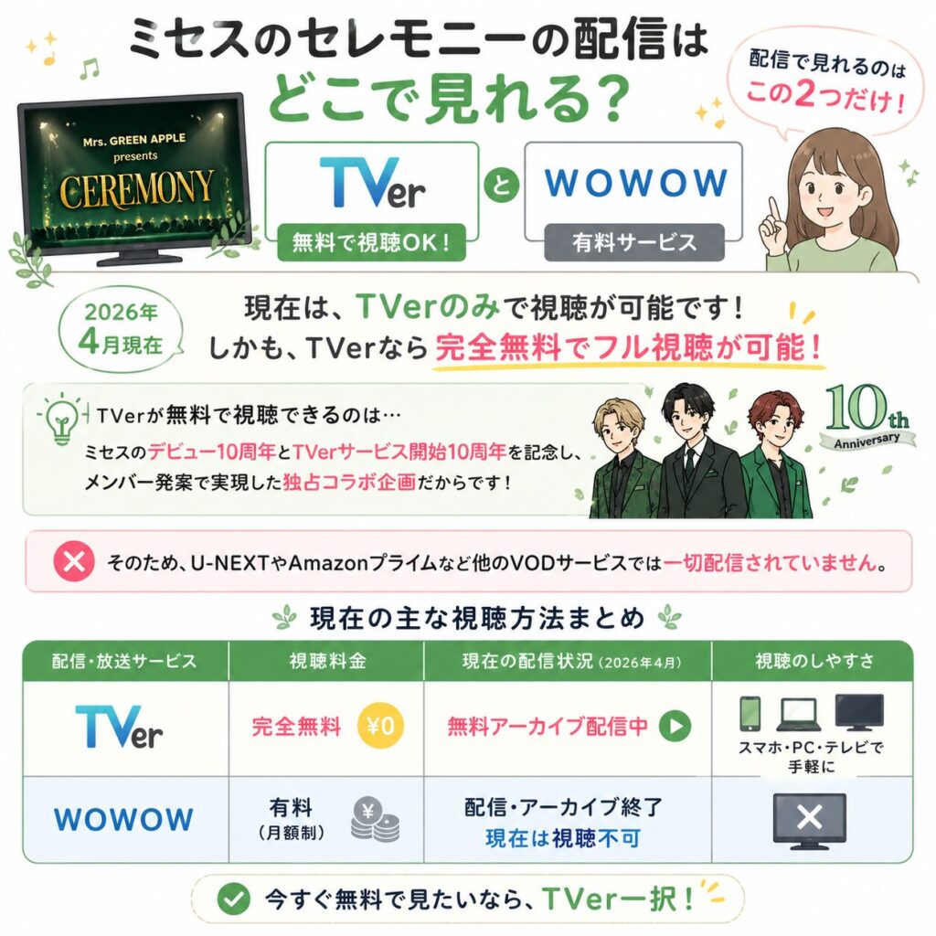 - ミセスのセレモニー配信は、TVerとWOWOWのみ