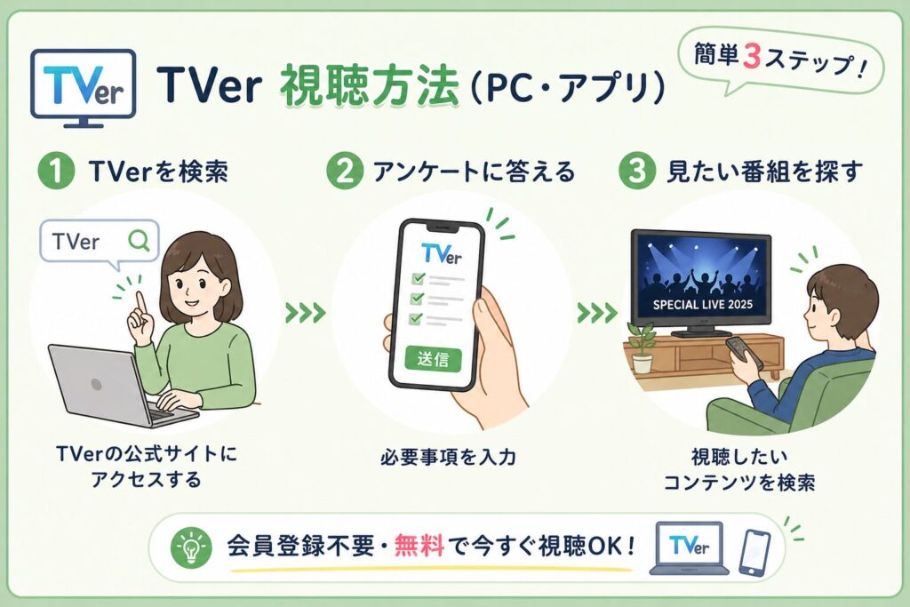 「それでもテレビの大画面でライブの迫力を味わいたい。」という方には、TVerをテレビで見る方法がおすすめです。