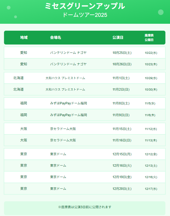 ミセスライブ2025の座席がわかるのは、公演の約3日前18時頃で、これは毎回ファンの大きな注目ポイントです。
