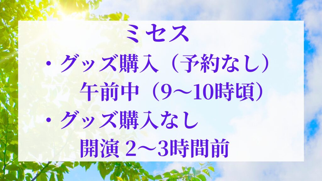 ミセスライブ2026は開演何時間前に行く?