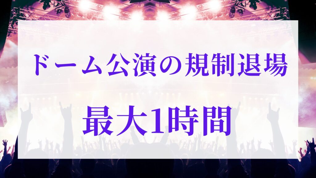 ドーム会場では、完全に出られるのは終演から約30〜60分後になるケースが一般的です。