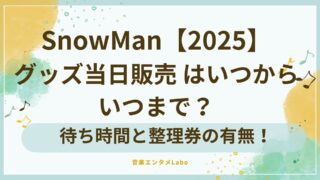 Snow Manドームツアー2025グッズ当日販売の開始時間・終了時間・待ち時間・整理券の有無を徹底解説。何時に並べば確実に買えるのか最新情報をもとに予測し、購入のコツや注意点もわかりやすく紹介します。この記事を読めば、人気グッズを確実に手に入れる戦略が立てられます。