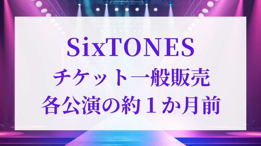SixTONES一般販売は、各公演の約1か月前に販売されます。