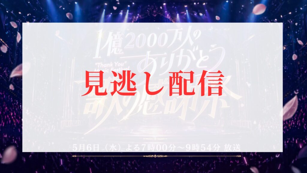 現時点では、「1億2000万人のありがとう 歌の感謝祭」の見逃し配信についての公式発表はありません。