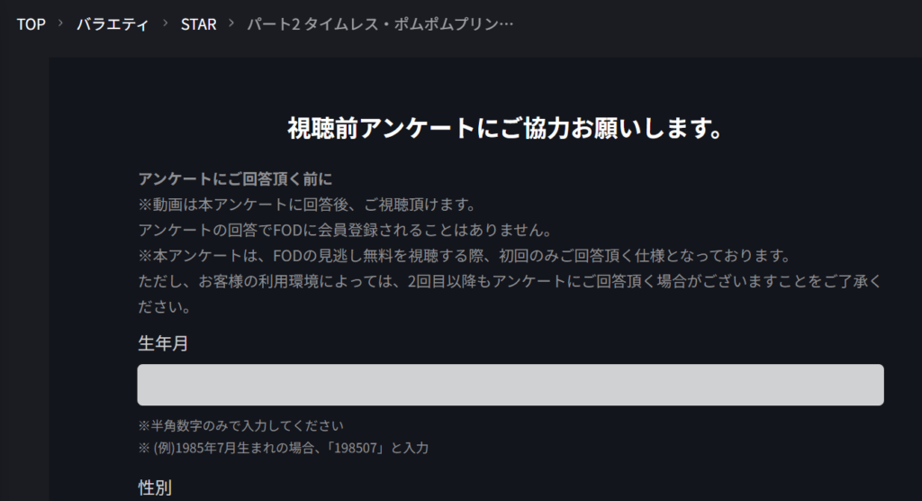 アンケートにこたえるだけで視聴できるよ。