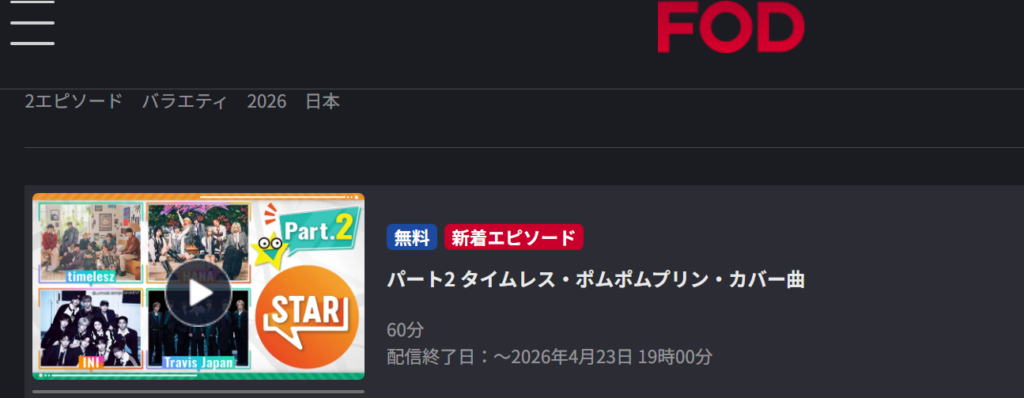 2026年4月16日放送の「STAR」初回スペシャルも、パート1・パート2に分かれて無料配信されています。