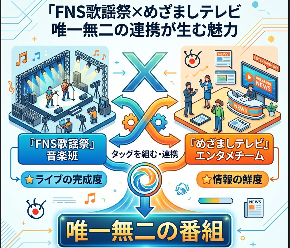 また、『FNS歌謡祭』チームが関わっていることからも、盛り上がりの波を意図的に設計したタイムテーブルになっているのが特徴です。