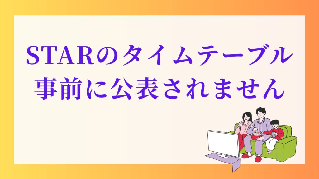 結論からお伝えすると、4月23日放送の『STAR』の詳細なタイムテーブルは4/17時点で発表されていません。