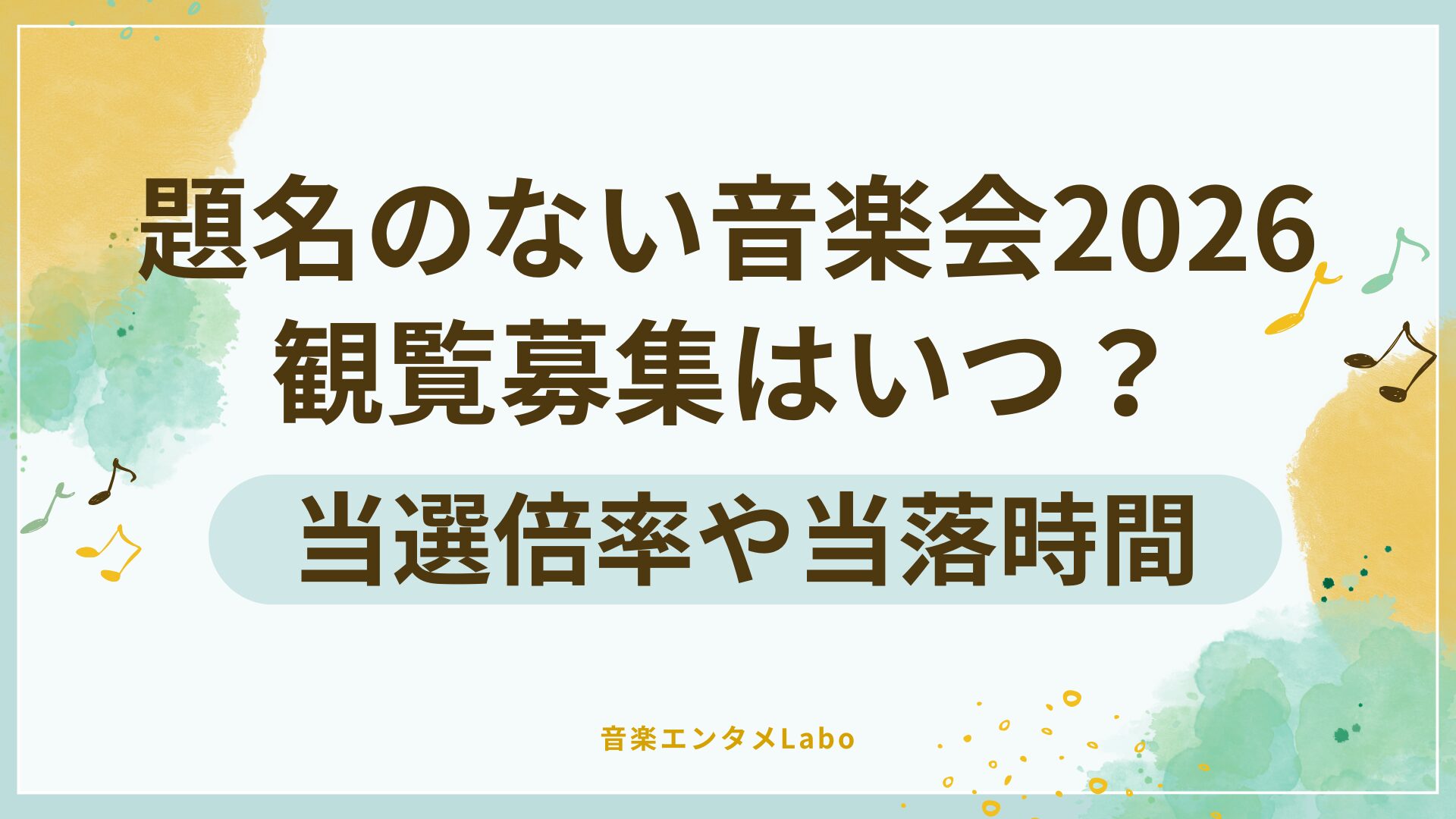 題名のない音楽会2026の公開収録観覧募集は、2025年12月20日(土)10:00〜2026年1月4日(日)23:59まで実施され、当落結果は2026年1月8日(木)18:00頃に発表されます。