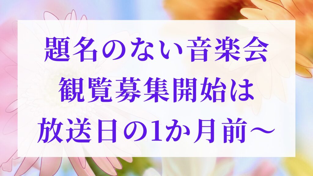 題名のない音楽会2026公開収録の観覧募集は、放送日の1か月前から2週間にわたり募集が開始されます。