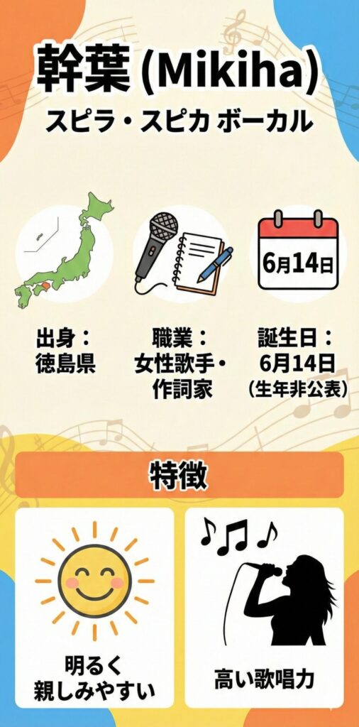 生年は非公表ですが、6月14日生まれで、明るく親しみやすいキャラクターと高い歌唱力が特徴です。