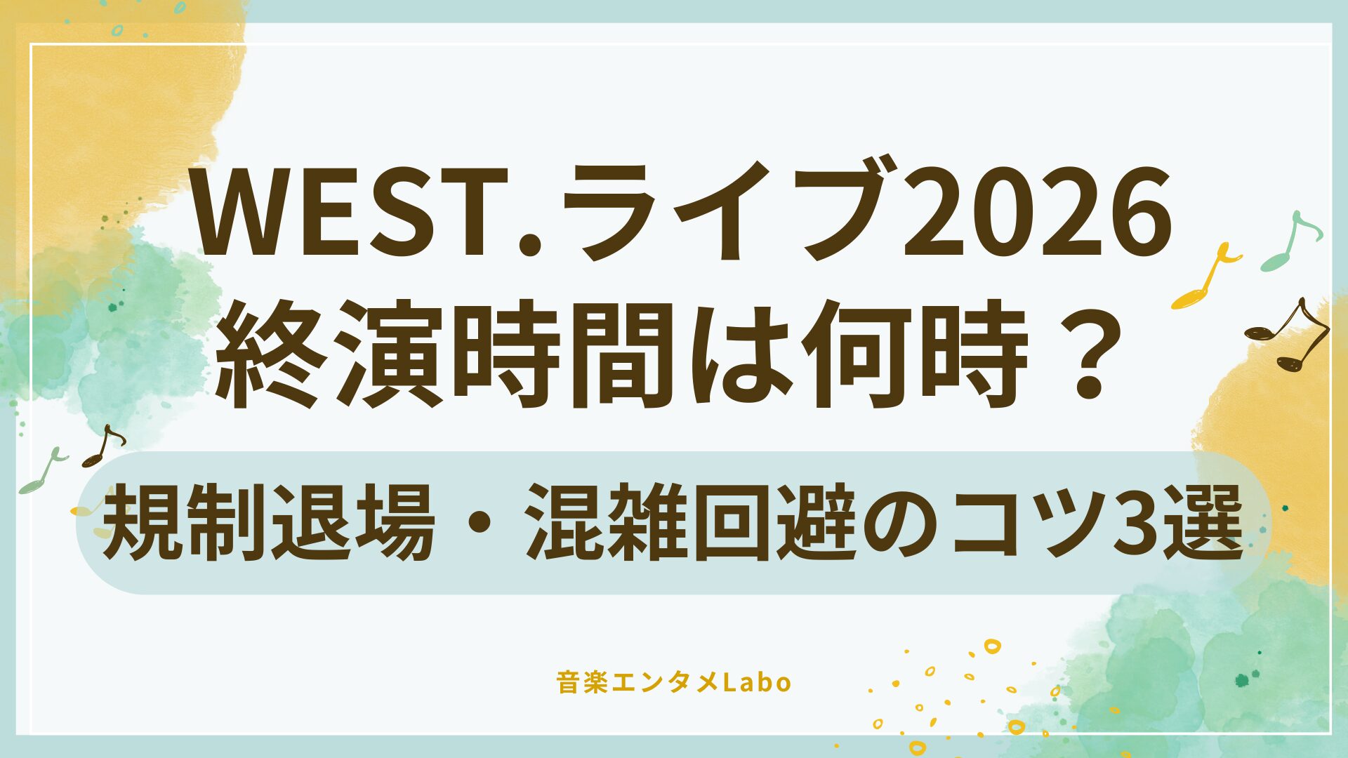 WEST.ライブ2026の終演時間は、開演時間の約2時間30分後になる可能性が高いです。